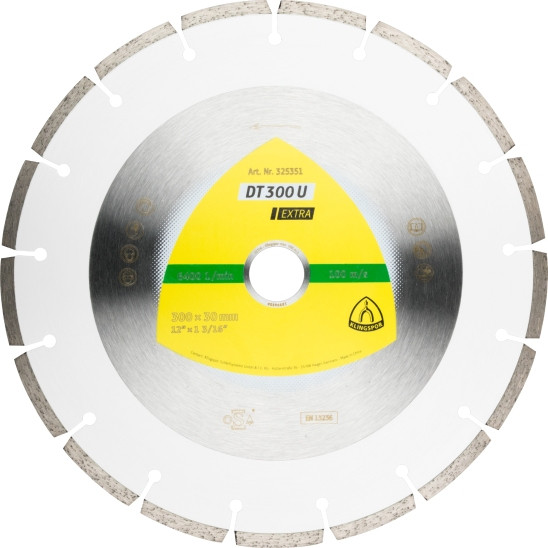 Klingspor DT 300 U Gyémánt vágókorongok, 300 x 2,8 x 20 mm 17 Szegmensek 50,1 x 2,8 x 7 mm, Standard fogazás, 326831, DT 300 U Extra, építkezési anyagok, Benzinmotoros daraboló-Asztali fűrész